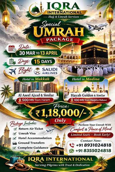 "I was anxious about my Umrah trip, but Iqra International put all my worries to rest. Their team was incredibly helpful and knowledgeable, guiding us through every step of the process. I can't thank them enough for making my pilgrimage so smooth and fulfilling."